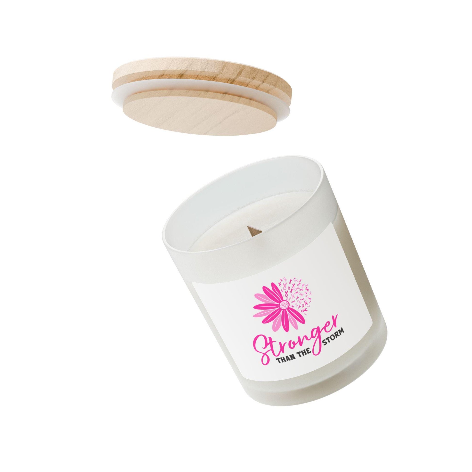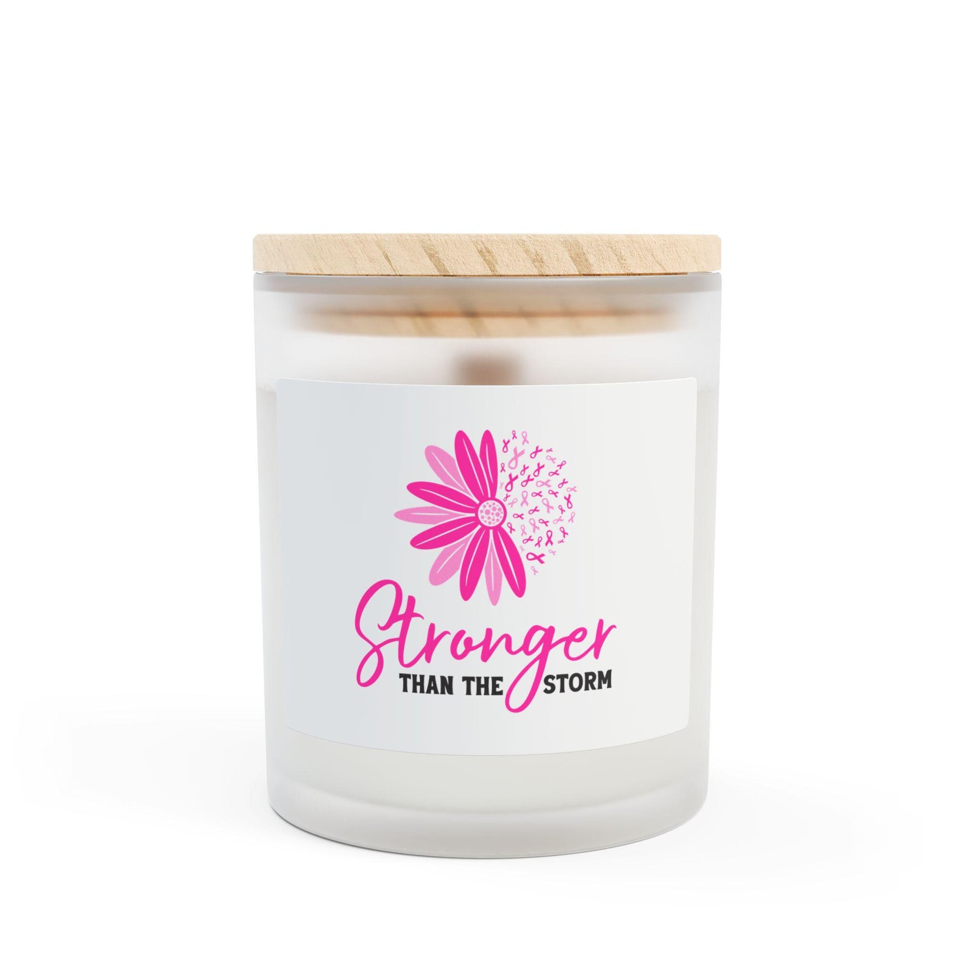 Stronger Than The Storm Frosted Glass Candle, Breast Cancer Support, Survivor Gift, Strength and Resilience
